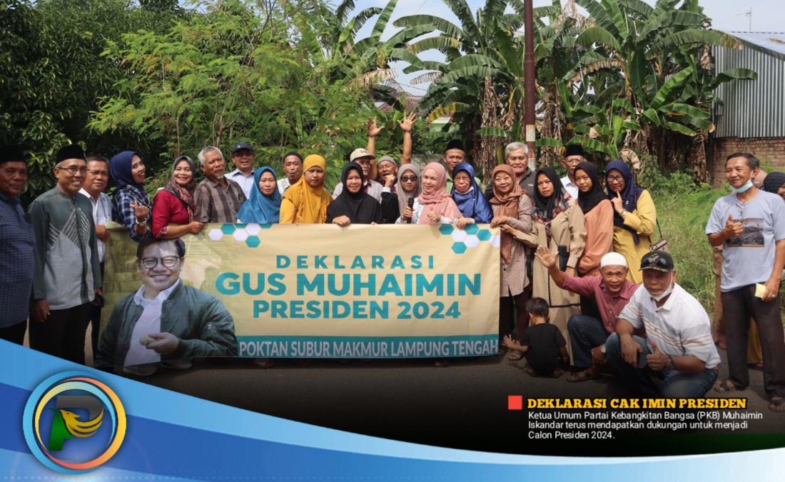 Ke dua kelompok tersebut dengan tegas mendeklarasikan Cak Imin sebagai Calon Presiden 2024, di Seputih Jaya dan Yukum Jaya, Gunung Sugih, Lamteng, Lampung.