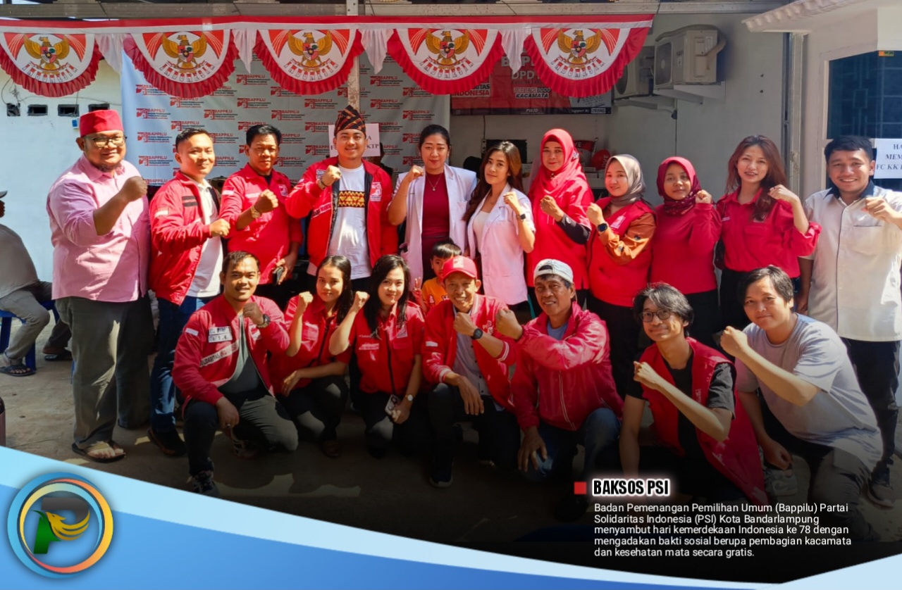 psibali.or.id/ – Badan Pemenangan Pemilihan Umum (Bappilu) Partai Solidaritas Indonesia (PSI) Kota Bandarlampung menyambut hari kemerdekaan Indonesia ke 78 dengan mengadakan bakti sosial berupa pembagian kacamata dan kesehatan mata secara gratis.